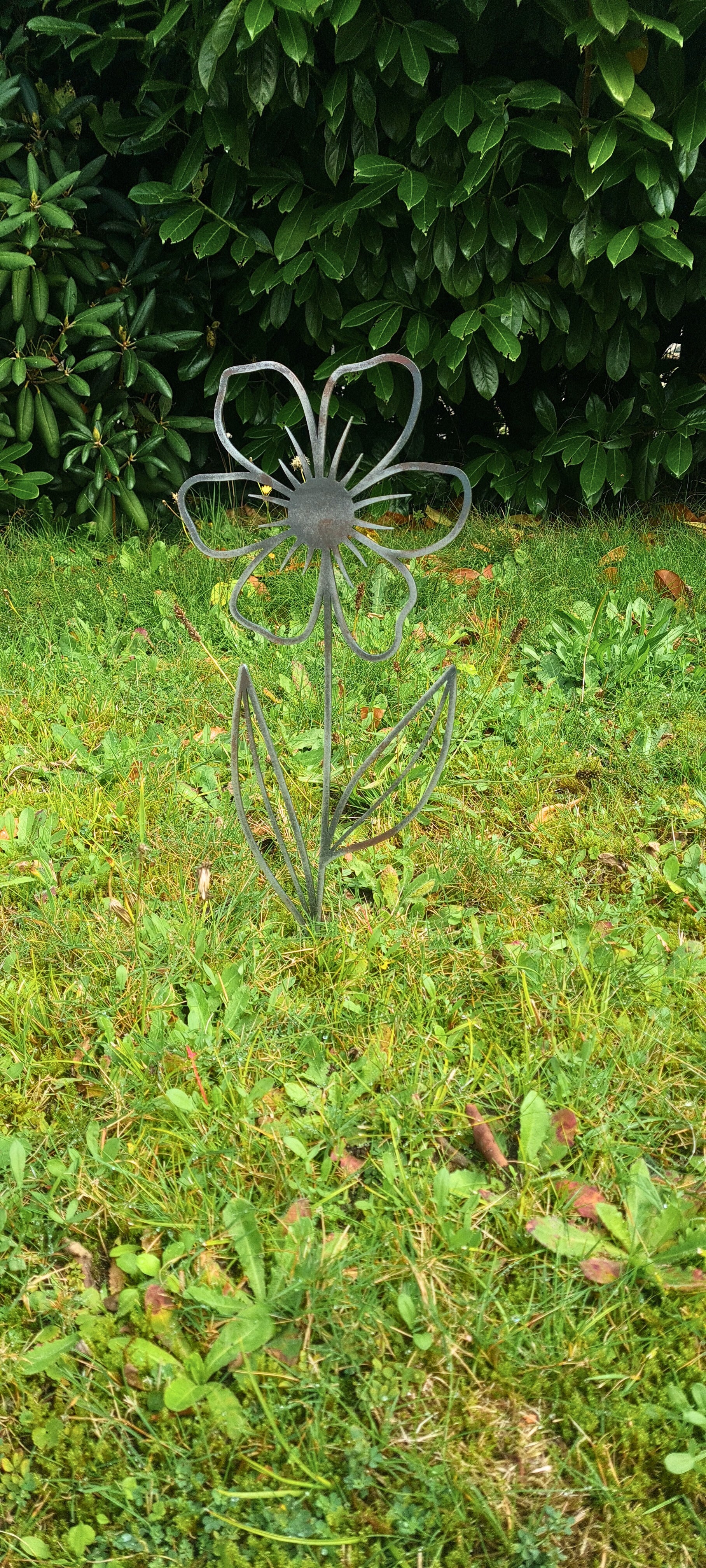 Hoogwaardig cortenstaal. Deze metalen Madelief is gemaakt van cortenstaal wat bedoelt is om te gaan roesten. Hierdoor is hij langdurig beschermd tegen de elementen en hebben ze een lange levensduur. Deze metalen bloem gaat jarenlang mee en veranderd met de seizoenen mee.